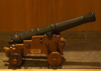 Modell av Karl XI kanon. Tillverkad i brons med eklavett.